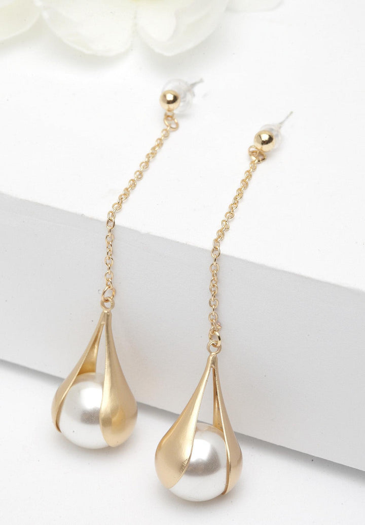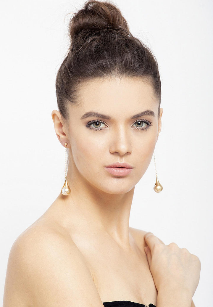 Style disse guldbelagte øreringe med snore og perler, med din formelle påklædning til dagen. Det er både enkelt og sofistikeret og perfekt egnet til kontortøj.