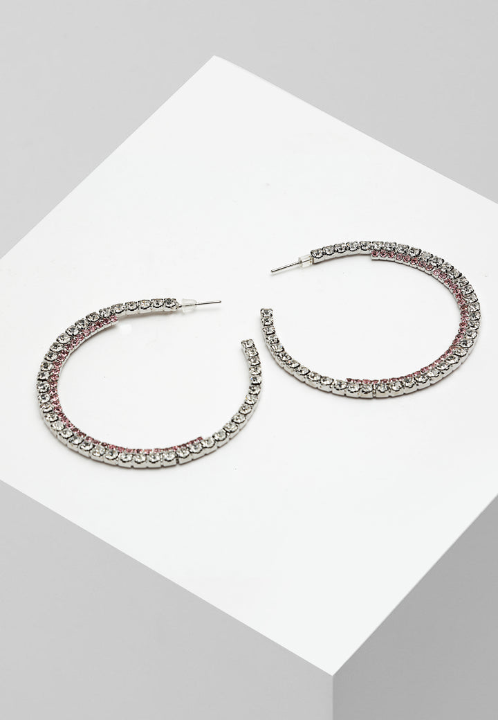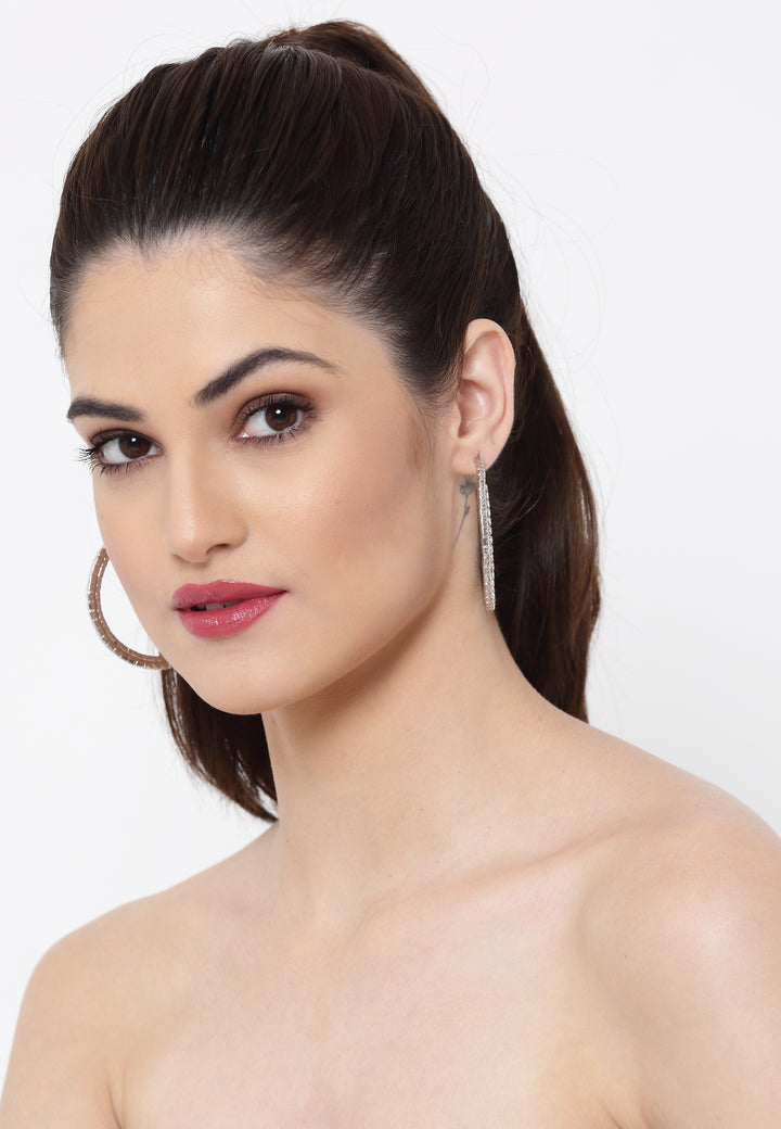 Disse øreringe har et slankt og moderne C-formet bøjledesign, prydet med funklende krystaller, der er omhyggeligt besat langs den ydre overflade. De kan bæres med afslappet påklædning for at tilføje et strejf af gnistre