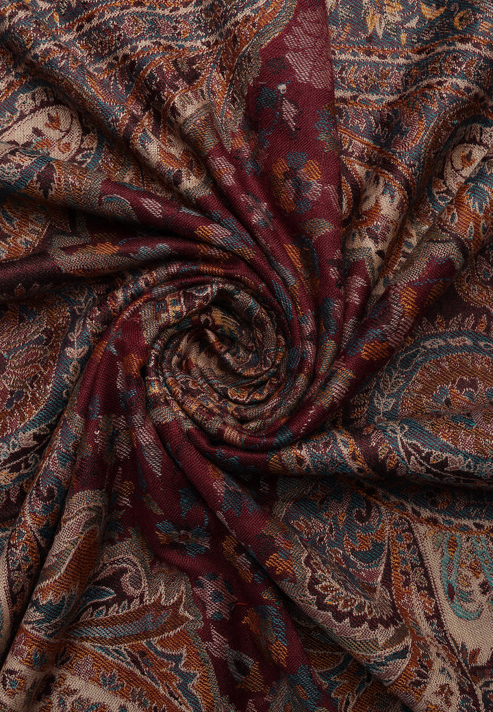Beautiful Jamawar designs, on a soft faux pashmina fabric and traditional artwork. Popular since the Mughal era. This traditional Kashmiri style stole has intricated design and quality.
