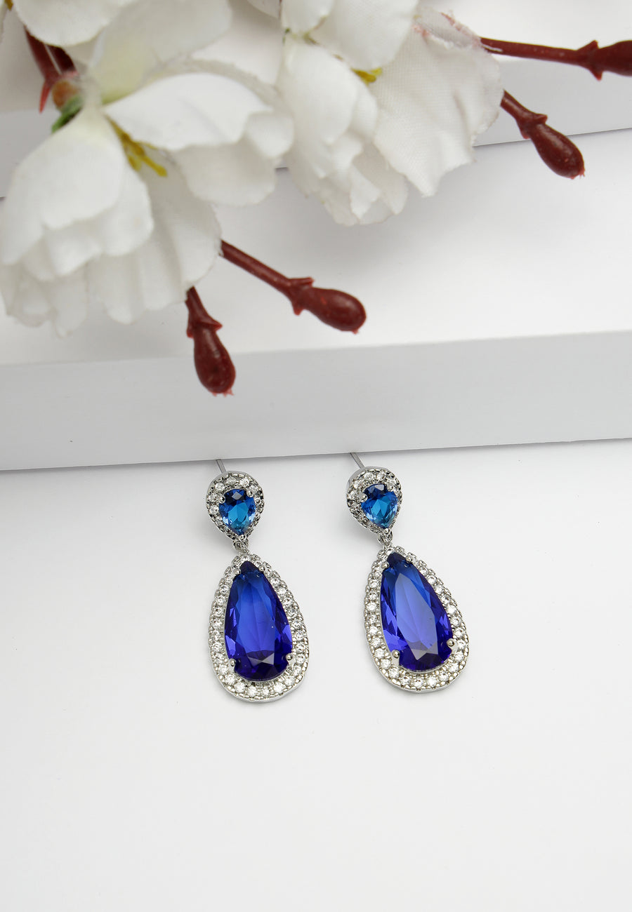 Les boucles d'oreilles en zircone cubique bleu foncé sont un accessoire saisissant et sophistiqué qui respire l'élégance et le glamour. Ces boucles d'oreilles remarquables comportent des pierres de zircone cubiques...