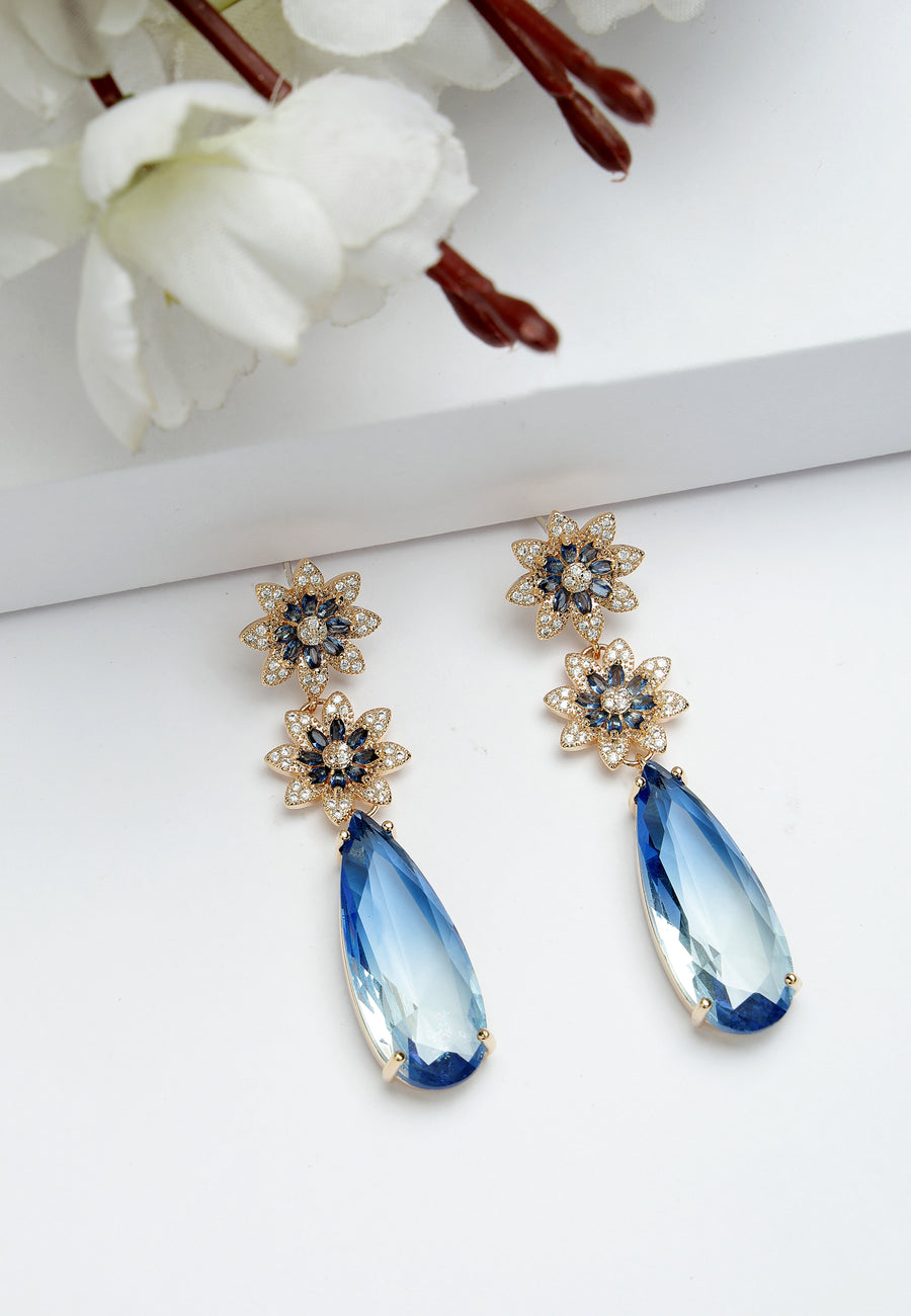 Boucles d'oreilles pendantes florales élégantes en zircone cubique
