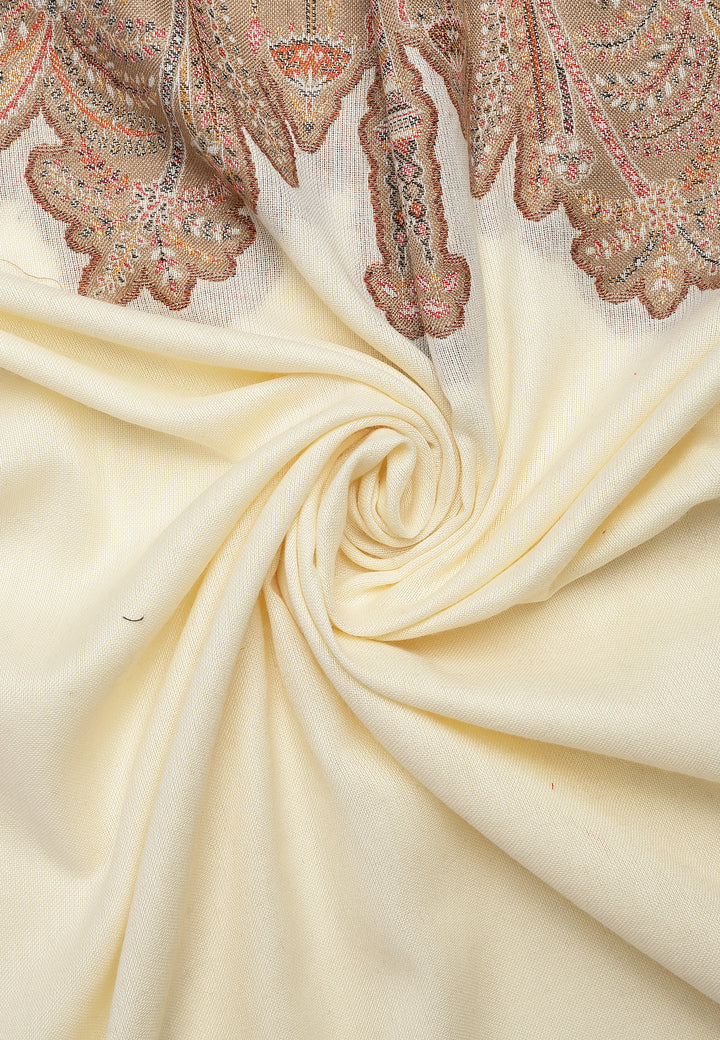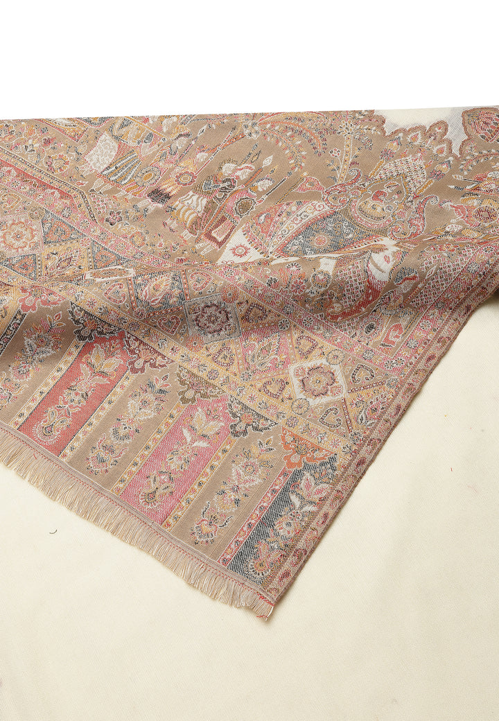Vackra Jamawar-mönster, på ett mjukt faux pashmina-tyg och traditionell konst. Populära sedan Mughal-eran. Denna traditionella kashmiriska stil sjal har intrikata mönster och kvalitet.