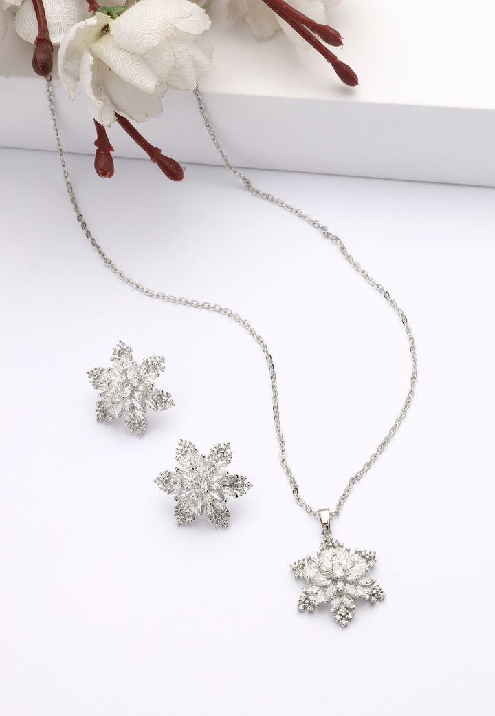 Is brionglóid álainn é an tacar seodra seo atá cosúil le tírdhreach geimhridh! Tá na pendants agus na cluaise sneachta íogair maisithe le raon gleoite de chlocha lonracha, ag cruthú cuma draíochta agus ghríobhálta. Is é an bealach foirfe chun teagmháil draíochta geimhridh a chur le haon éadaí.