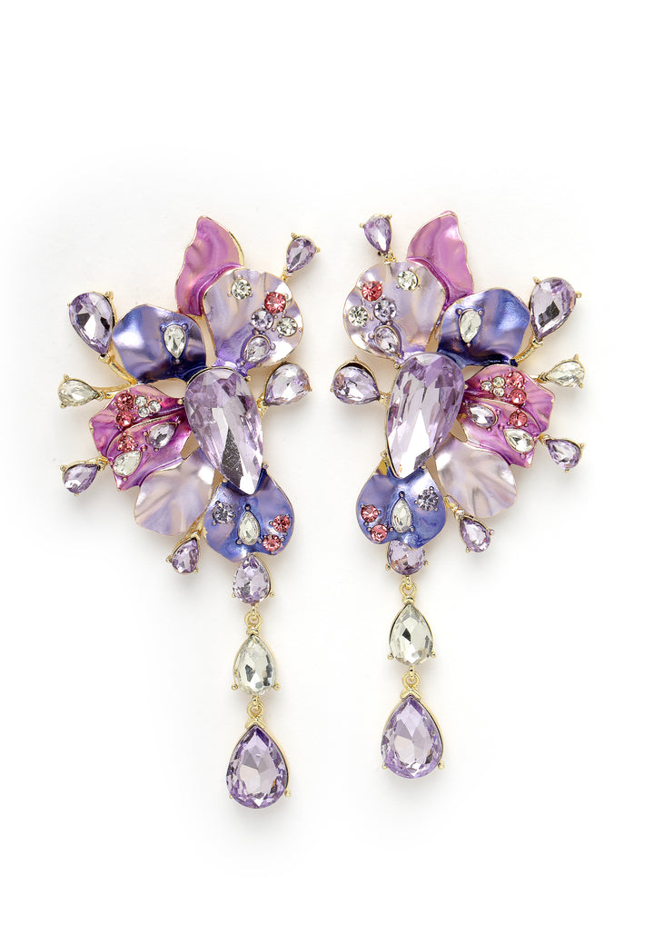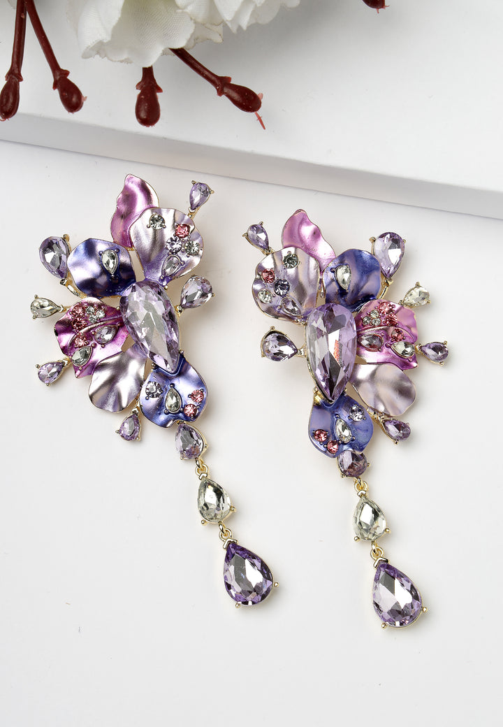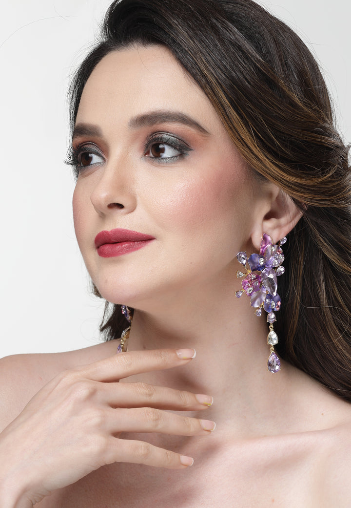 Zanurz się w czarującym pięknie natury dzięki tym fioletowym kolczykom w kształcie kępek kwiatów. Każdy kolczyk zawiera urzekającą wiązkę misternie wykonanych fioletowych kwiatów, delikatnie zawieszonych, aby stworzyć hipnotyzującą kaskadę kwiatów. Kolczyki doskonale dodadzą kobiecości i wdzięku każdej stylizacji.