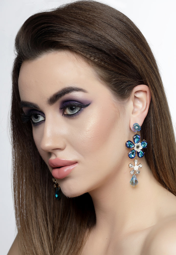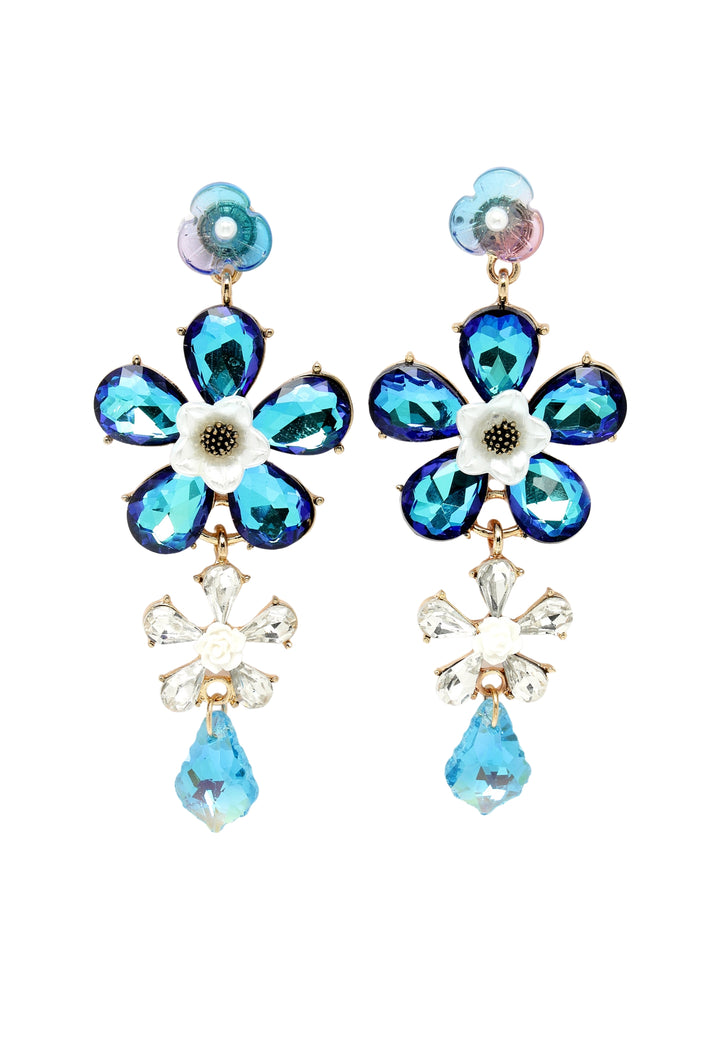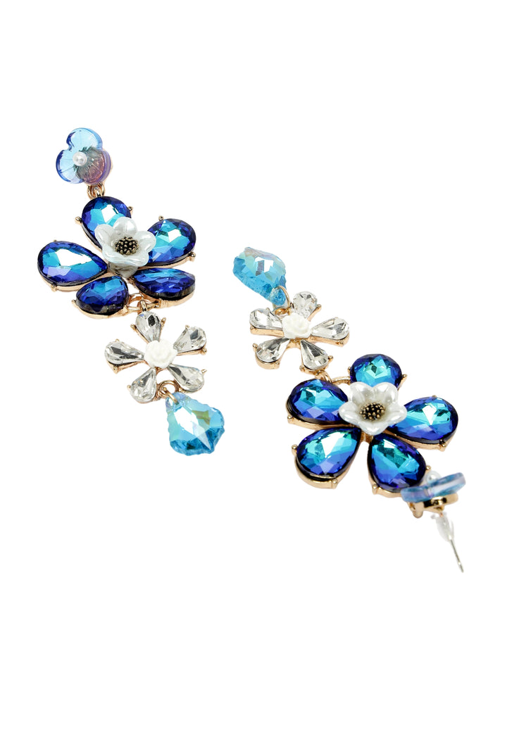 Estos preciosos pendientes colgantes con forma de flor azul son un accesorio divertido y elegante que puede añadir un toque de diversión a cualquier conjunto. Estos pendientes presentan delicadas piezas en forma de flor hechas de cristales. Estos pendientes colgantes con forma de flor azul pueden ser un accesorio perfecto para un conjunto de primavera o verano, añadiendo un toque de color y alegría. Se pueden combinar con un vestido fluido, un top colorido o pantalones cortos de mezclilla para una apariencia informal pero elegante.