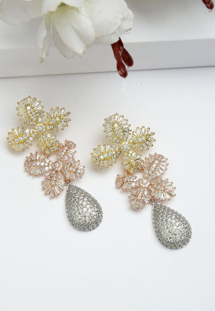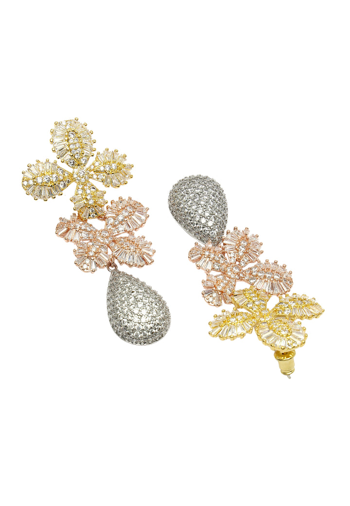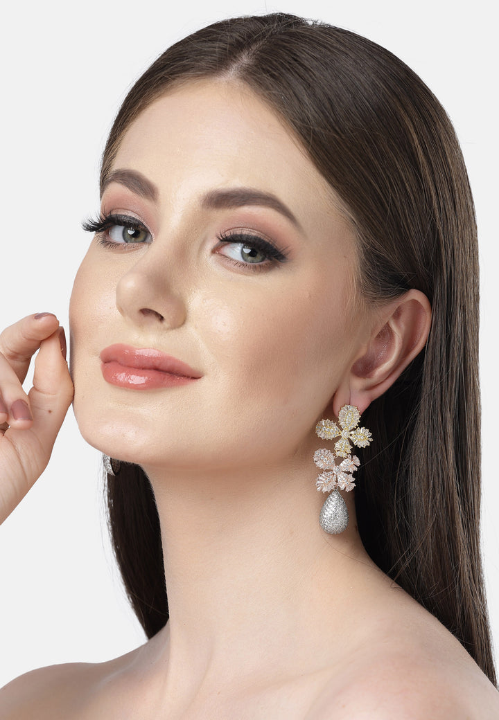 Los aretes colgantes con dos flores de circonio cúbico en plata con un acabado dorado en el medio son un accesorio deslumbrante y elegante que combina la belleza atemporal de las flores con un toque de contraste lujoso. Ya sea combinados con un elegante vestido de noche para un evento especial o con un conjunto informal para darle un toque de elegancia, los aretes colgantes con doble flor de circonita cúbica en plata con acabado dorado seguramente causarán una declaración. Con su diseño atemporal y acabado lujoso, estos aretes son una adición imprescindible a cualquier colección de joyería, ya que agregan un toque de sofisticación y estilo a cada conjunto.