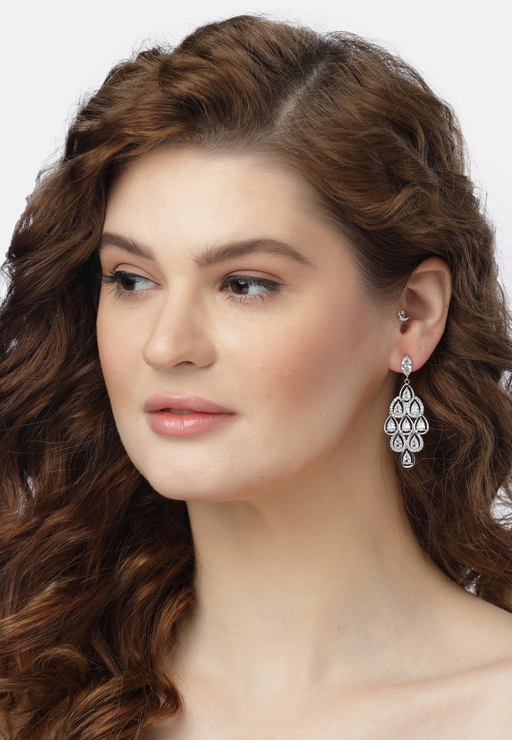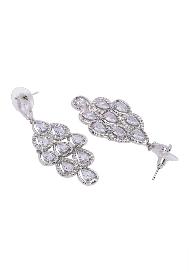 Estos elegantes pendientes de gota presentan una disposición en cascada de piedras brillantes, creando un efecto de cascada hipnotizante. Son una mezcla perfecta de sofisticación y brillo, añadiendo un suave toque de glamour.