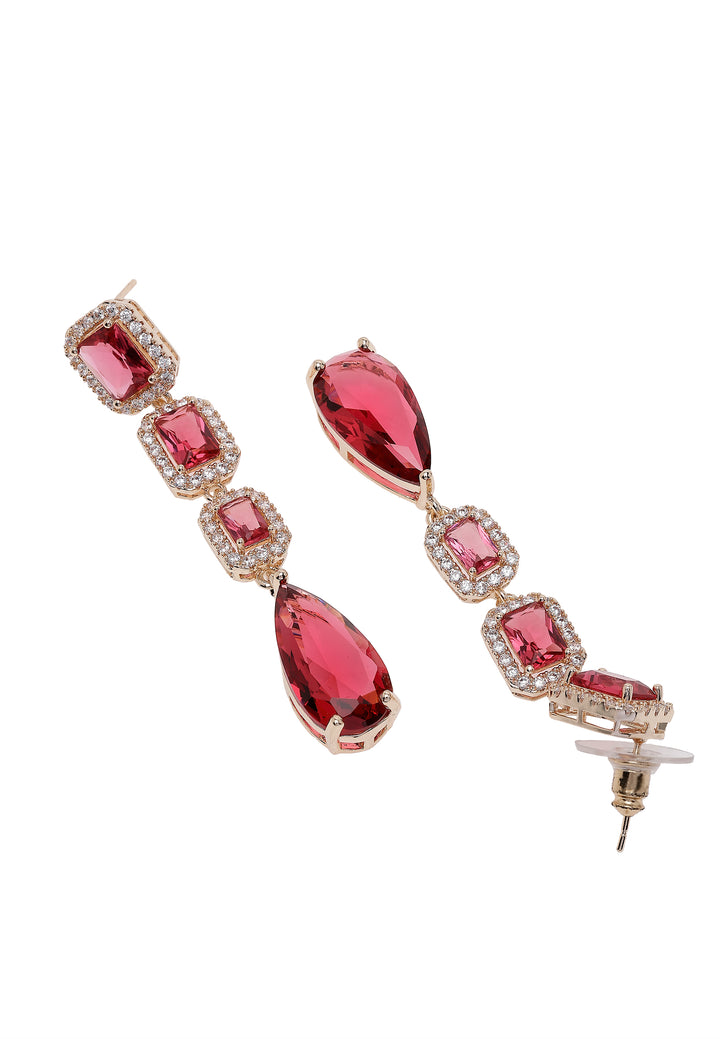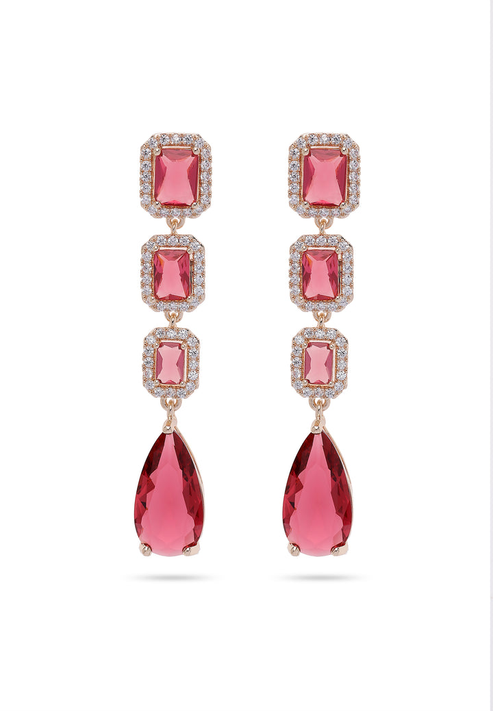 Estos elegantes pendientes presentan una llamativa combinación de piedras preciosas de un profundo color verde con un rico contorno púrpura. Las piedras de corte cuadrado caen graciosamente hacia una gran gema verde en forma de lágrima facetada, añadiendo un toque audaz pero sofisticado. Su intrincado diseño y vibrante contraste los convierten en un accesorio llamativo para cualquier ocasión especial.